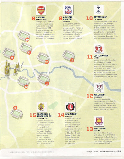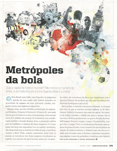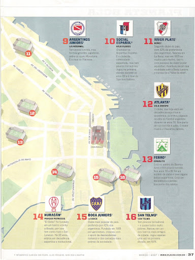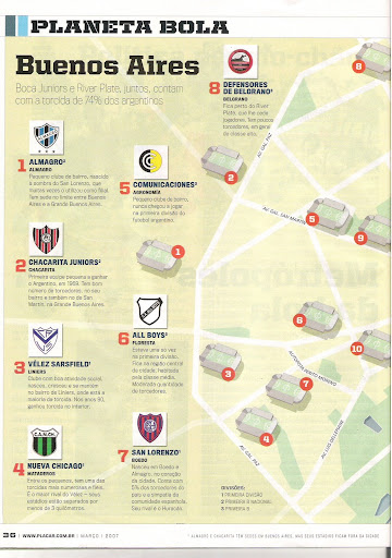 Eu havia prometido a reportagem retratando o futebol argentino no mês de Março, mas não deu para scannear na sexta e no sábado. Com isso, segue agora este belo matérial retratando o número de estádios em Buenos Aires, que por sinal, é a maior antro de templos do mundo em só uma cidade...